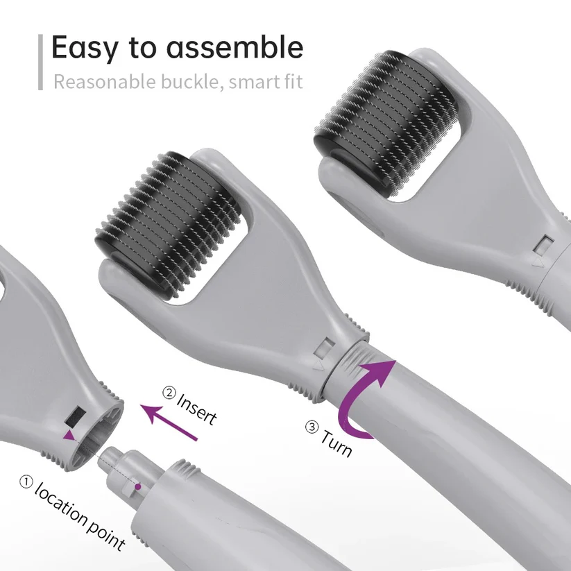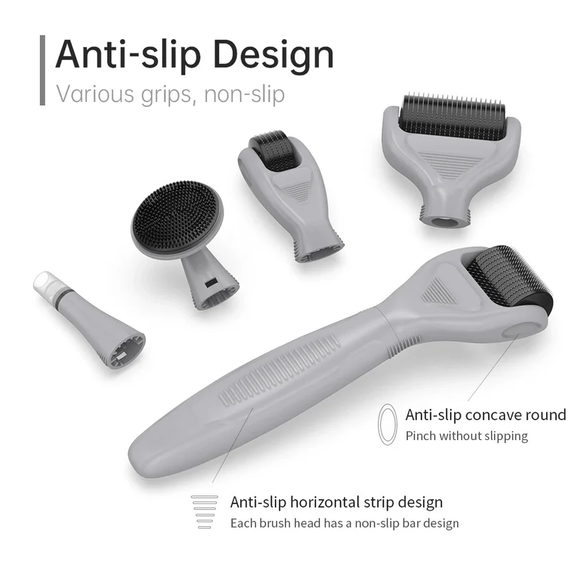 Multi-functional dermaroller kit designed to support hair growth by stimulating the scalp and enhancing nutrient absorption.Key Benefits