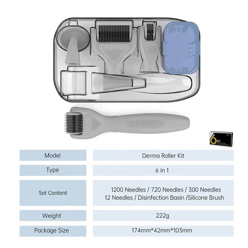 6 in 1 Dermaroller Kit for Hair Growth – Black EditionShort Description